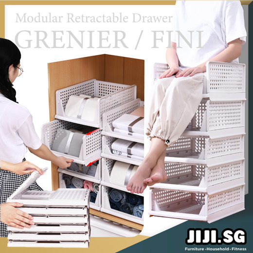 (JIJI.SG) Modular Retractable Storage Drawer - Organiser - GRENIER - FINI - Stacking - Sliding - Wardrobe / jt