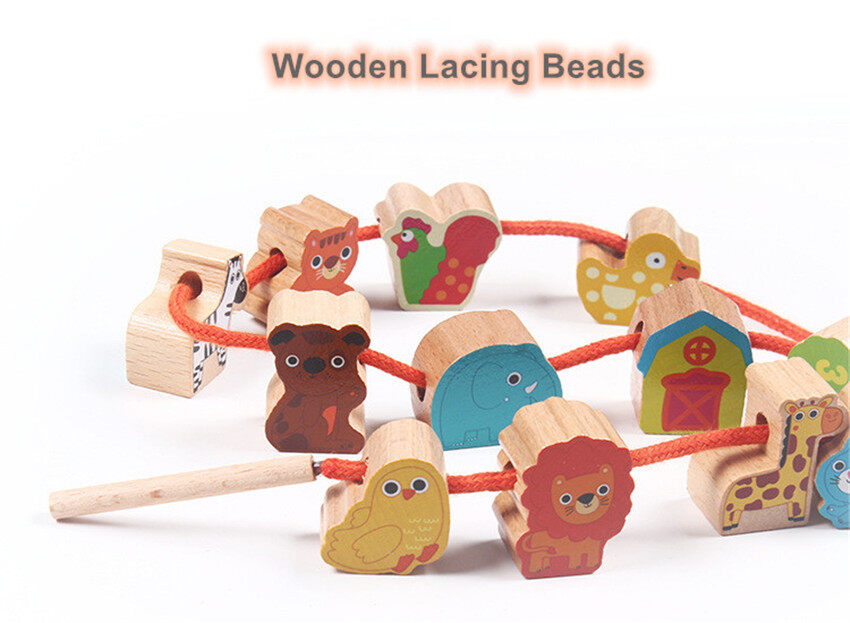 Moulty Wooden Lacing Beads for Toddlers, Fine Motor Montessori Toys for Toddlers 2 3 4 Years Old, Wooden Toys Animals Fruits Vegetables for Kids,Preschool Educational Activities Gift for Boys Girls