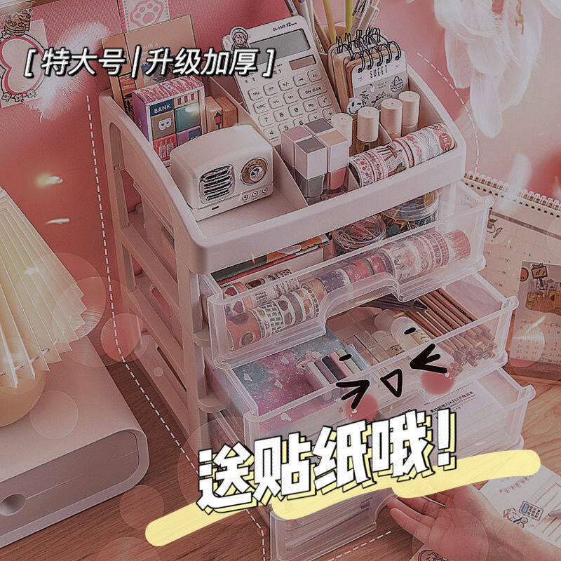 【READY STOCK】 ins girl heart desktop drawer type student dormitory makeup storage box desk tape stationery multi-layer storage box