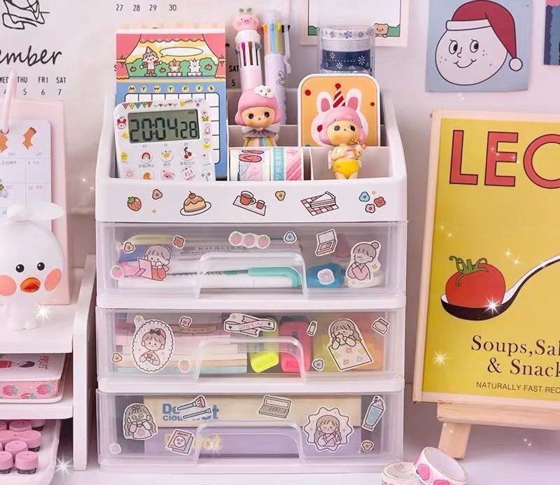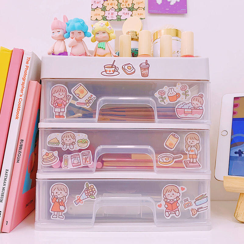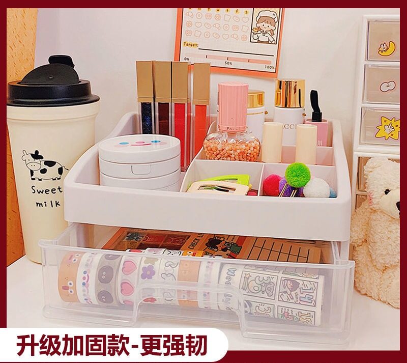 SKE307 【READY STOCK】 ins girl heart desktop drawer type student dormitory makeup storage box desk tape stationery multi-layer storage box