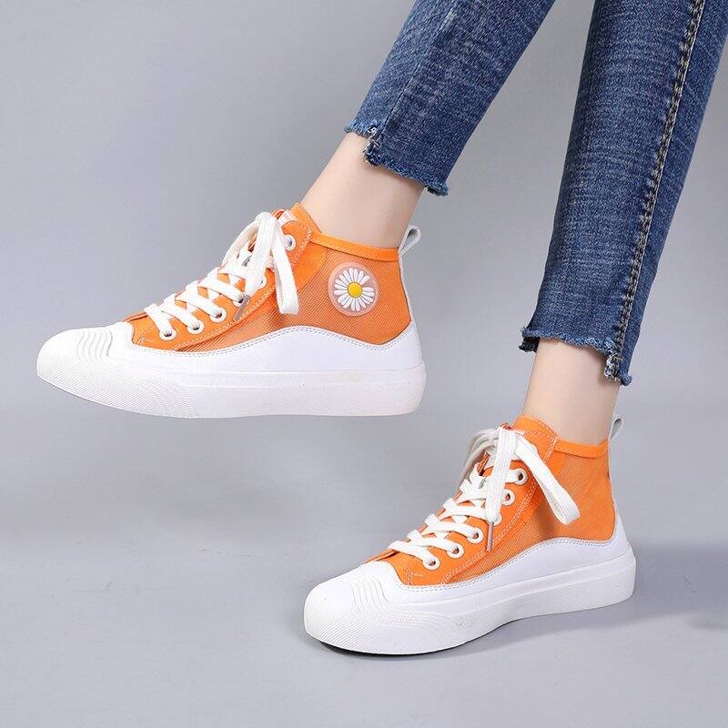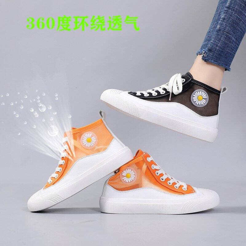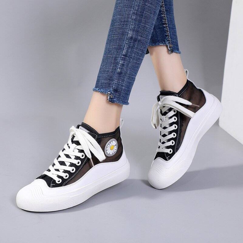 Hong Kong Popular Brand Fashion Daisy Hight-top Canvas White Shoes Female Korean-style New Style Breathable Mesh Sports Casual Board Shoes