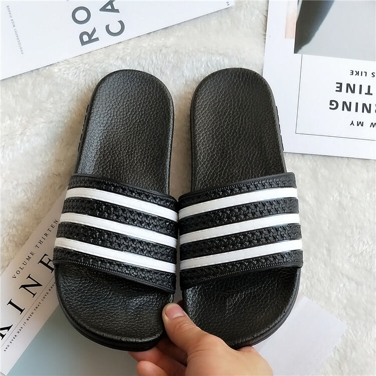New Korean Style Summer Men's and Women's Indoor Non-Slip Blowing Couple's Three Bars Black Slippers Striped Soft Bottom Sandals