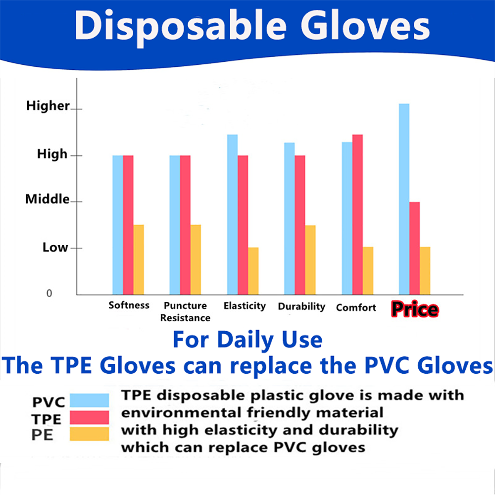 One Box 1,00 pieces super poly disposable gloves, TPE Vinyl gloves Household Cleaning Products food service washing gloves