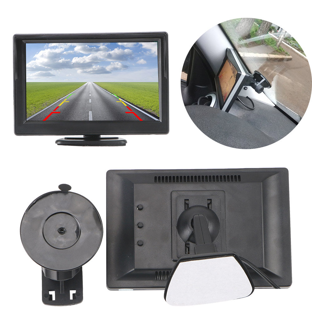 Rear View Monitor Car Parking Assistance Infrared 5 Inch Car Reversing Rearview Backup Camera Vehicle Camera Rubber Cup + Bracket Waterproof