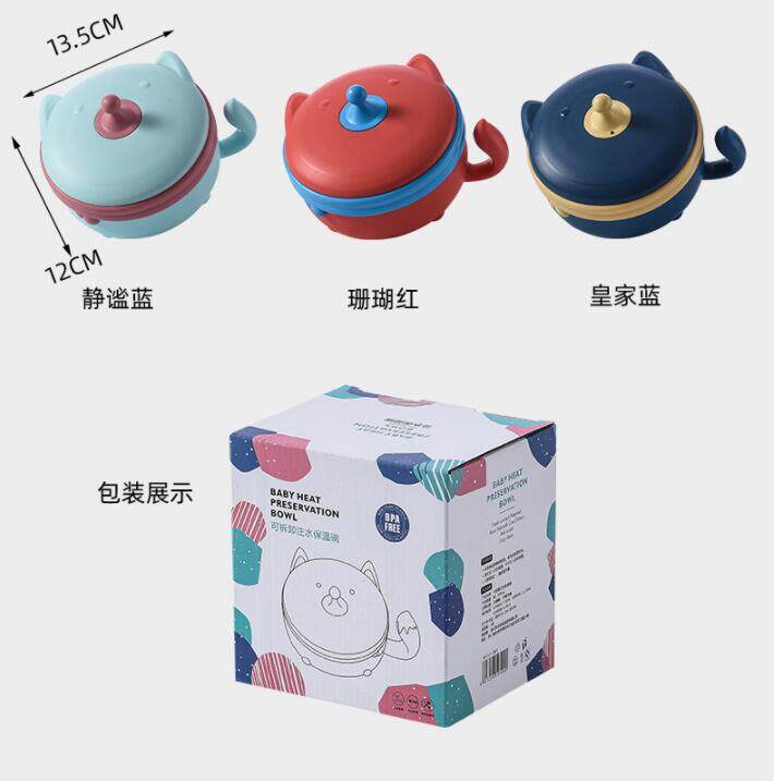 VREN Food Warm Injection Hot Water Insulation Kids Dishes 306L Stainless Steel Tableware Baby Sucker 400ml Feeding Bowl Plate Children's Tableware Set