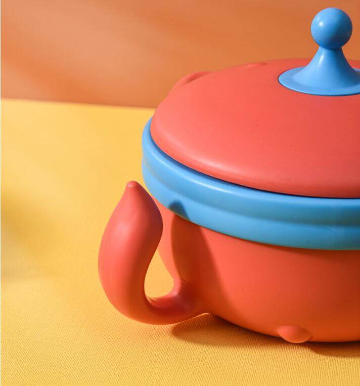 Mamimami Home Baby Meal Feeding Set 100% Silicone Bowl,Sippy Cup,Bib Natural Rattle Toy Toddler Gift with Rattan Box