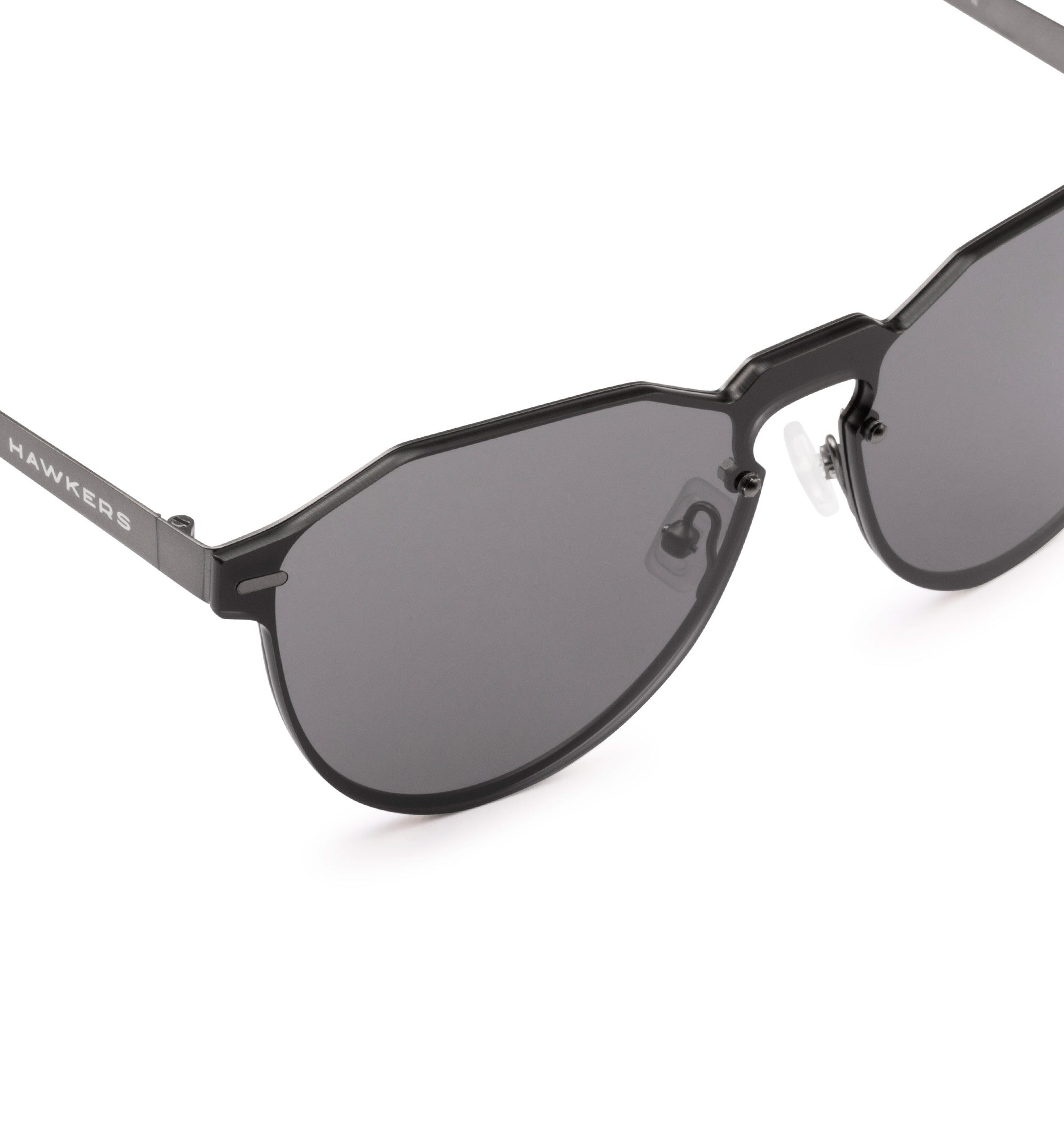 Warwick-style full front sunglasses with matte graphite metallic frame and black shield lenses. No gender model Nylon lenses which offer improved sharpness and resistance for greater optical performance Category 3 lenses with UV400 protection which offer superior antiglare protection Base curve 2 nearflat frame front Nickelfree stainless steel frame front for high corrosion resistance and increased strength Antislip, antiallergy silicon nose pads 3 barrel hinge for improved grip and durability Temples made of TR90 from EMS, considered the best nylon in the world for eyewear frames greater flexibility and resistance Size: Front 13,8 cm, Height 5 cm, Temples: 14 cm Includes: Microfiber cover, box and set of decorative stickers