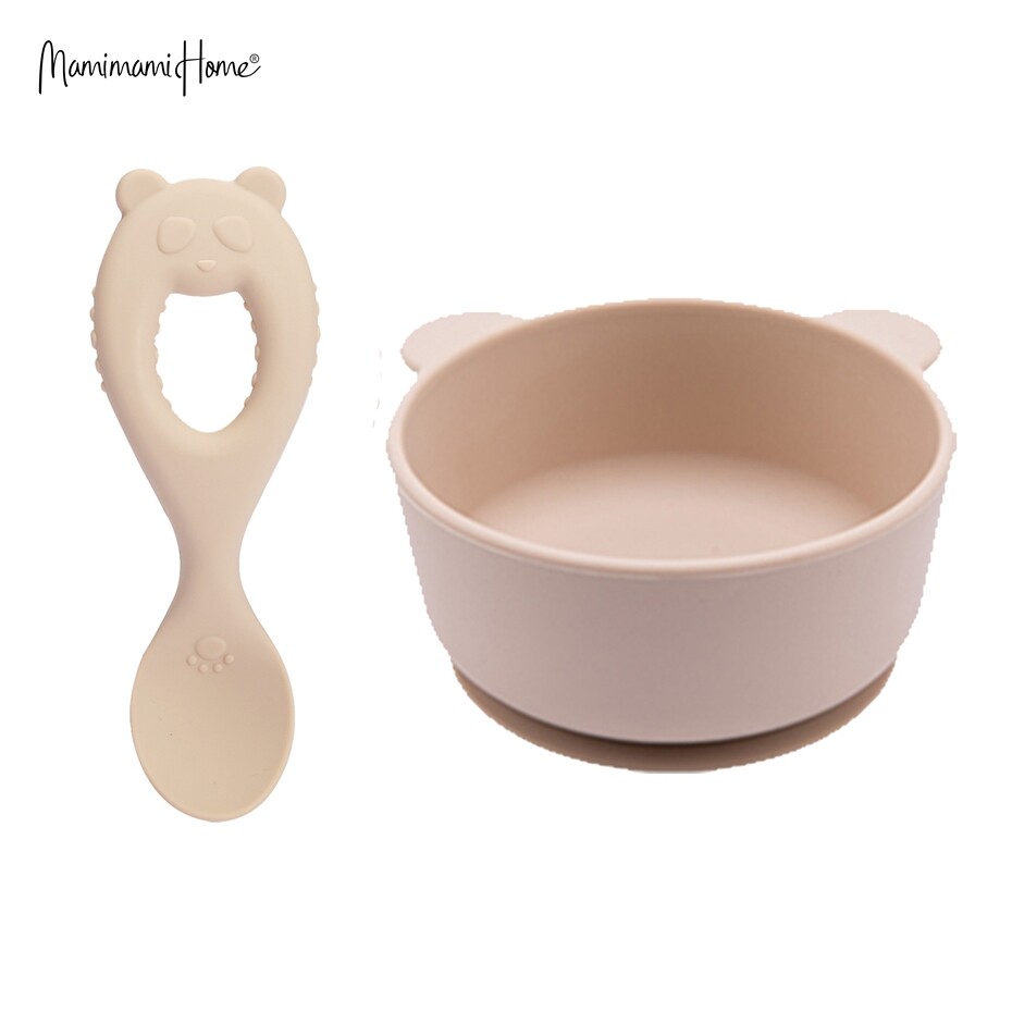 Mamimami Home Baby Bowl Set BPA Free Silicone Feeding Suctiom Bowl with Panda Spoon