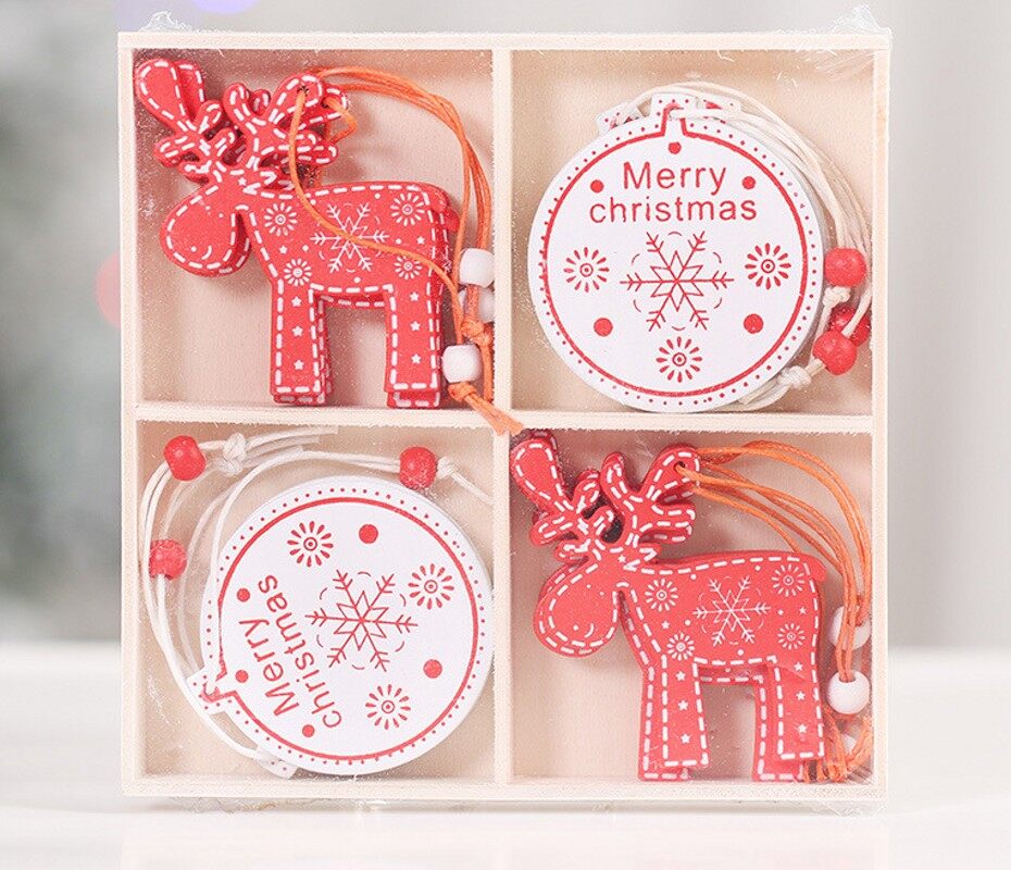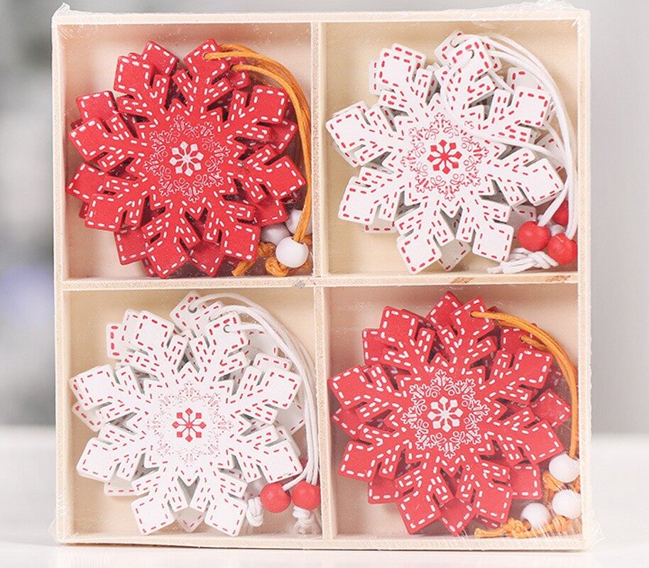 12pcs/lot Christmas Tree Ornament Wooden Snowflake Hanging Pendants Xmas Decoration For Home New Year Kids Gifts Party Favors