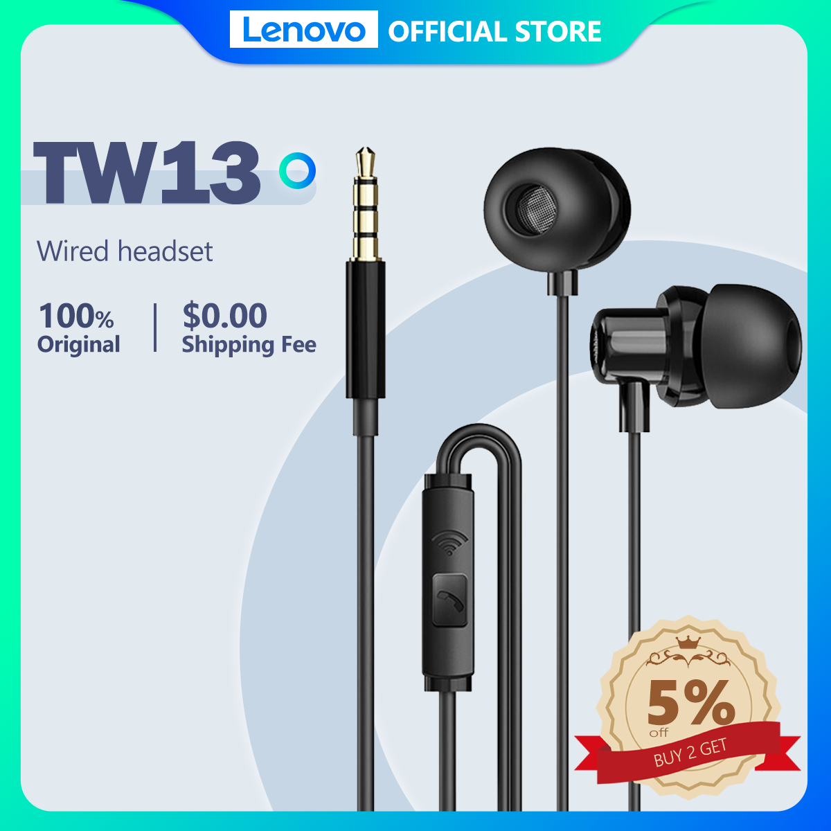 Lenovo TW13 Headset Handsfree Earphone Noisereduction Stereo Earbuds headset gaming with Mic HD Stereo Sound Earbuds High bass Headphone earpieces Microphone