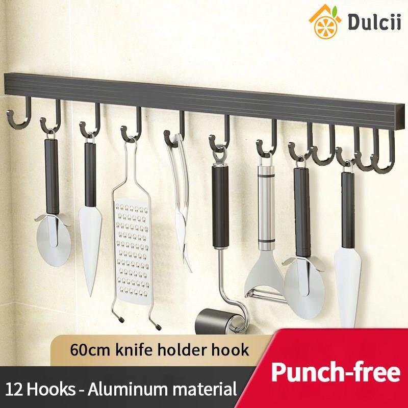 Dulcii 1PCS No Drilling Space Aluminium Kitchen Hooks Rack Multifunction Wall Mount Kitchen Shelf Utensil Holder With Hooks Mug Storage Kitchen Tools Holder Wall Mounted Kitchen Organizer