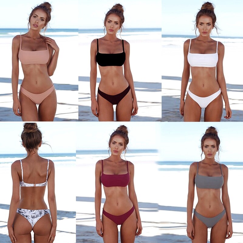 ECMLN 2022 Sexy Bikini Sets Women Swimsuit Solid Bikini Backless Swimwear Low Waist Bathing Suit dropship