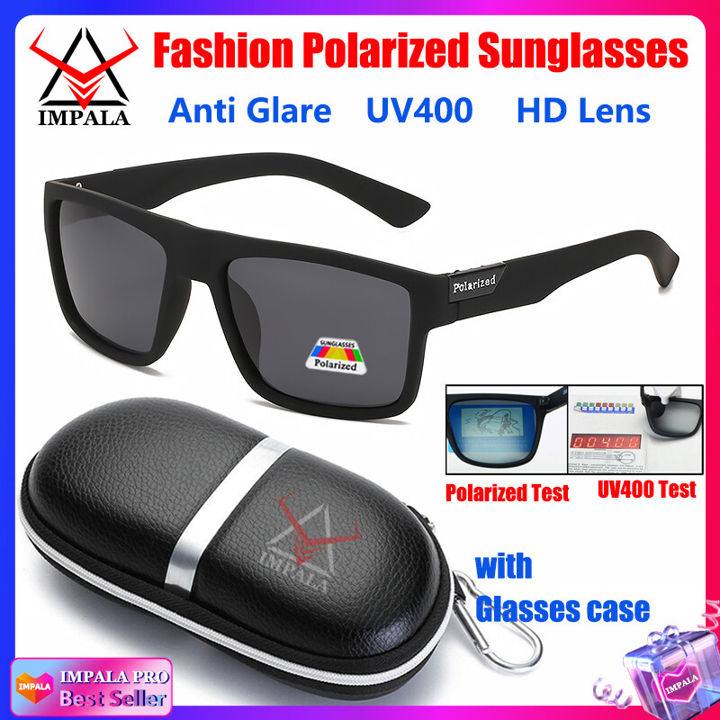 IMPALA PG1660L Fashion Men Women Polarized Sunglasses Anti Glare Driving Fishing Sun Glasses for Men Korean Style Black Spectacles UV400 Lens with Glasses Case