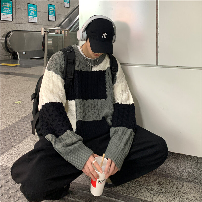 Autumn and Winter Thickened Thick Sweater Men's Ins Fashion Brand Loose Bottoming Shirt New 2021 Popular round Neck Sweater