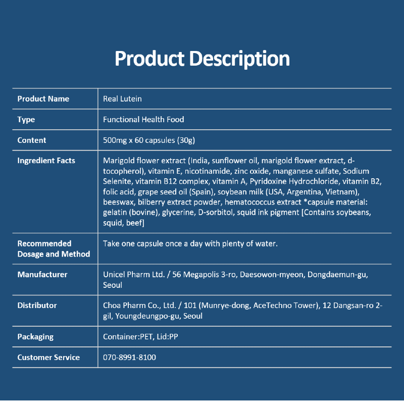 Functional Product for Eye Health, Funeat Real Lutein