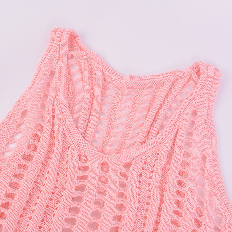 Eekisuf Sexy Hollow Out Beach Dress Women V Neck Sleeveless Crochet Swimsuit Cover Up Vestidos Female Bathing Suit