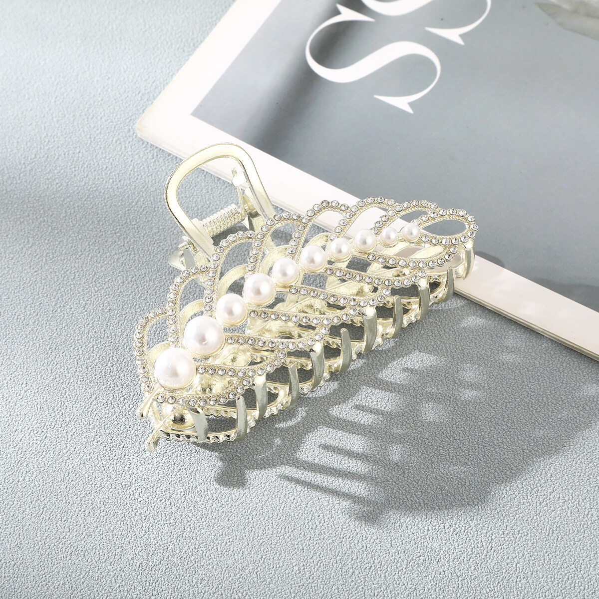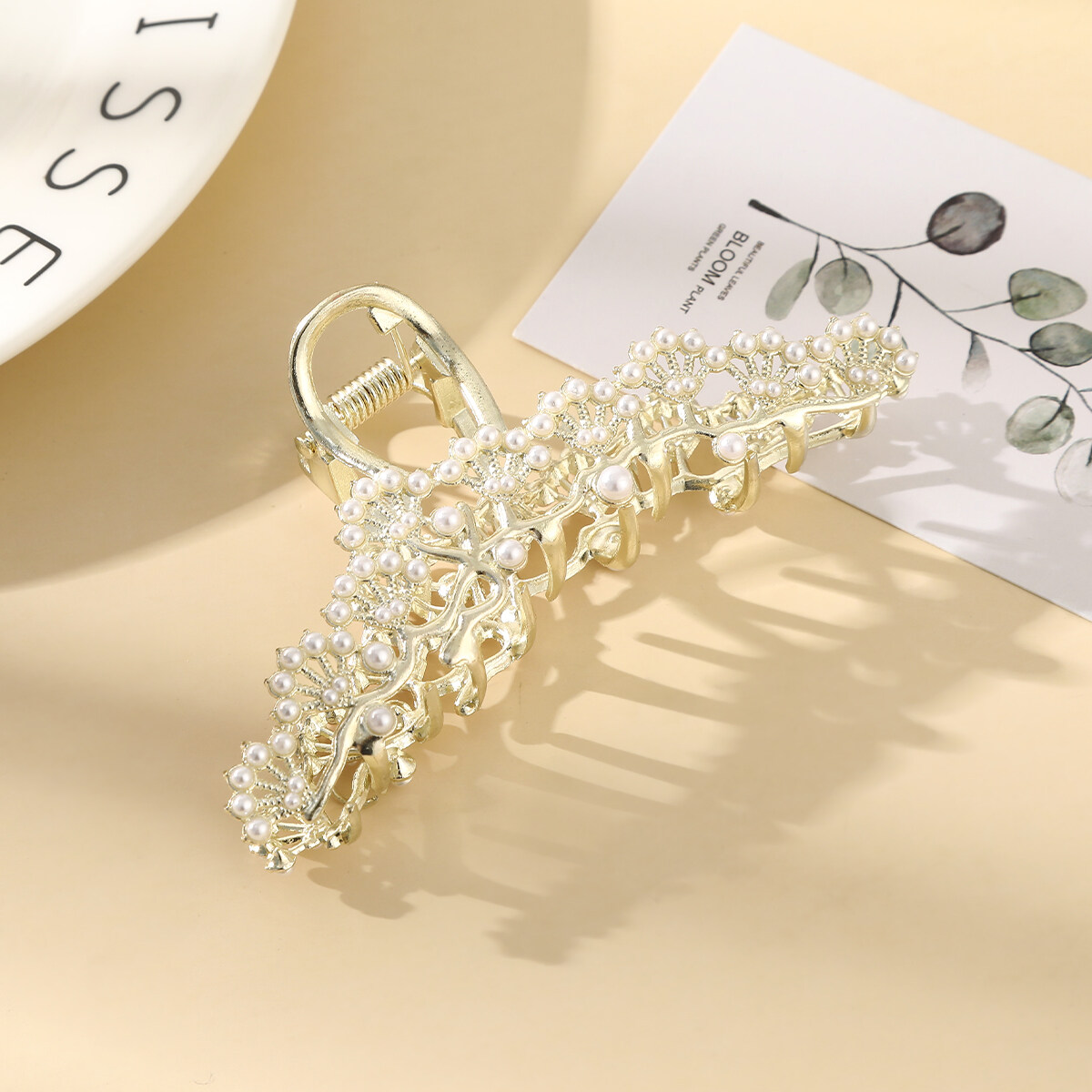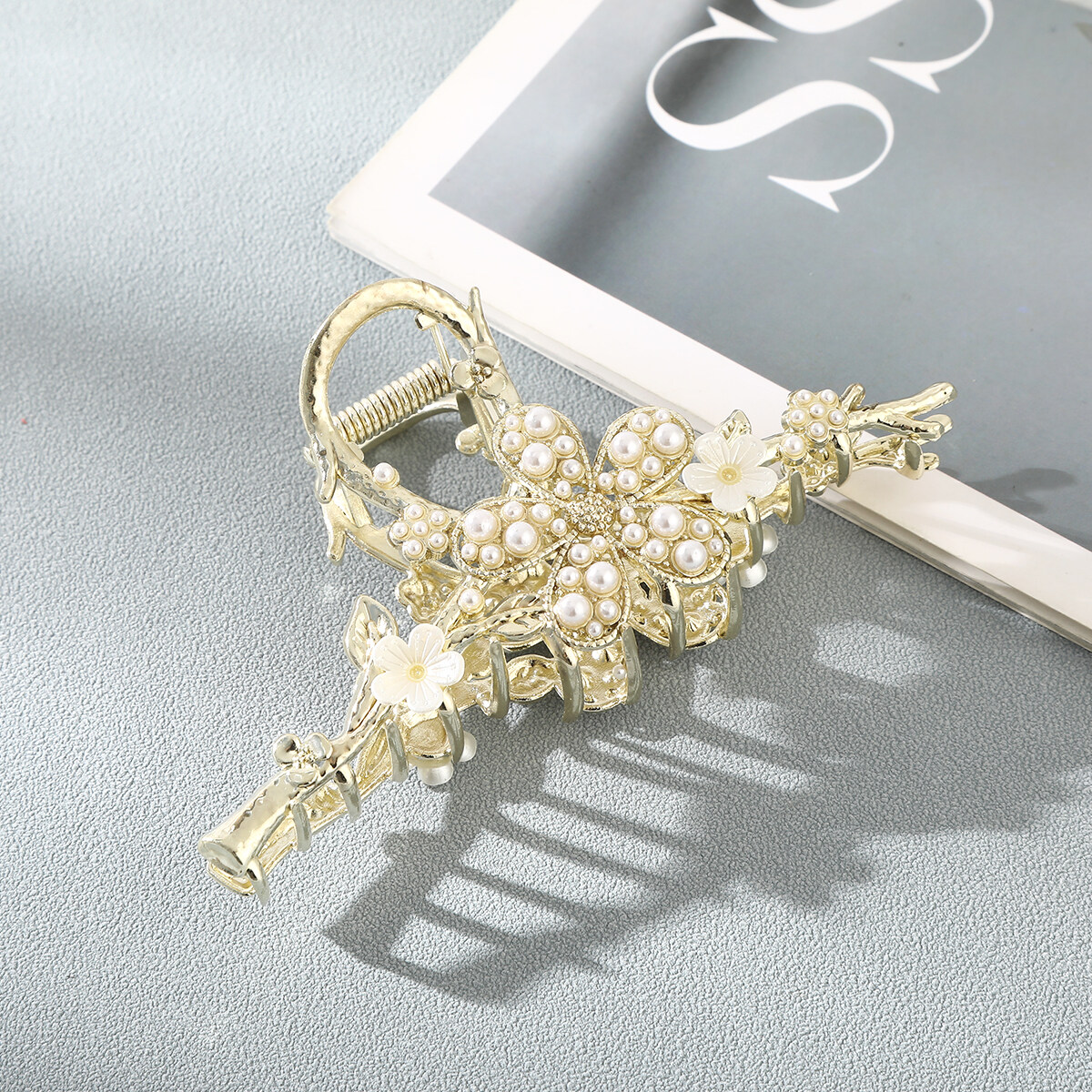 1pc Fashion Korean Style Alloy Hair Clip Senior Retro Style Flower Leaves Pearl Hairpin Catch Hair Accessories