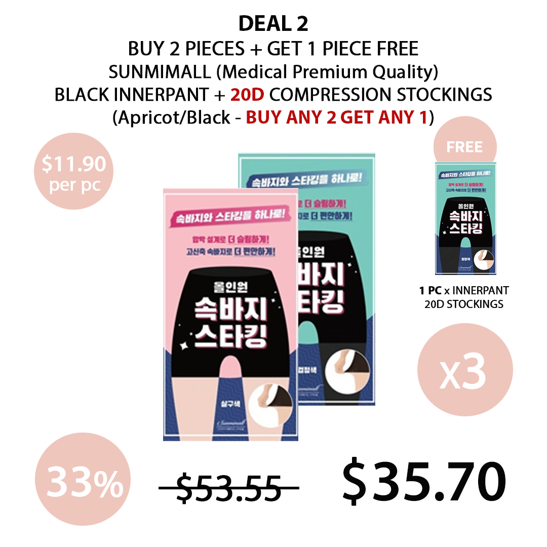 (Sunmimall) Black Innerpant + 20D Compression Stockings (Apricot/Black) (Free Size)- COCOMO