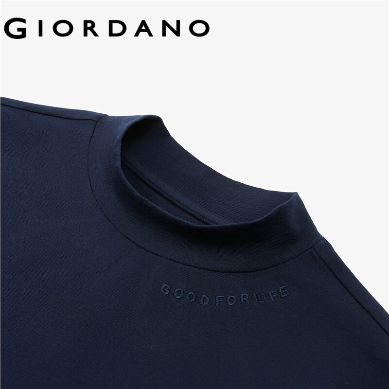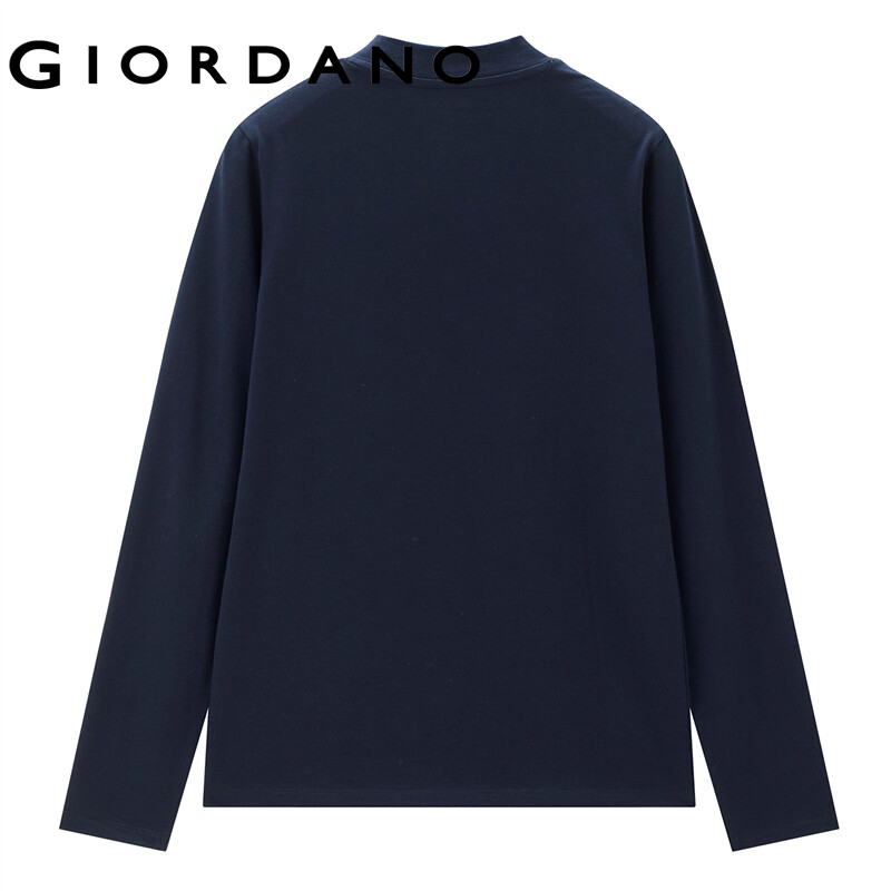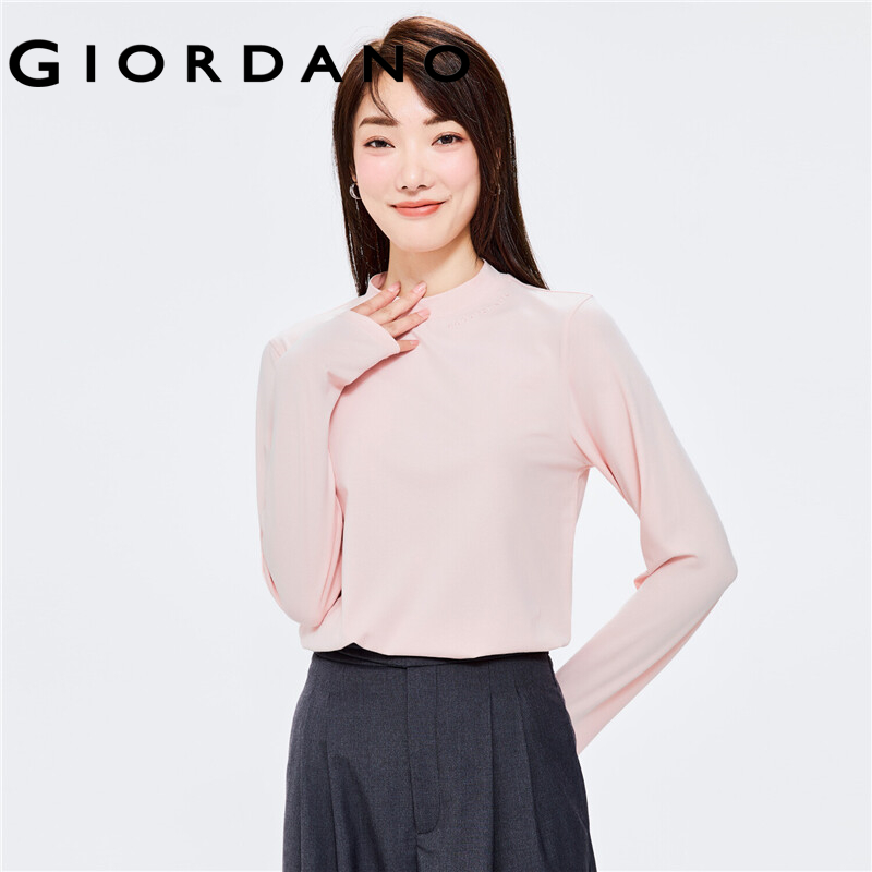 GIORDANO Women T-Shirts Letter Embroidered Stretchy T-Shirts Mockneck Long Sleeve Plain Color Simple Basic Casual Tee 13322564