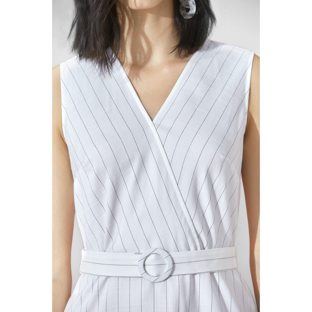 G2000 Women Linen Look Pinstripe Irregular Hem Dress With Belt