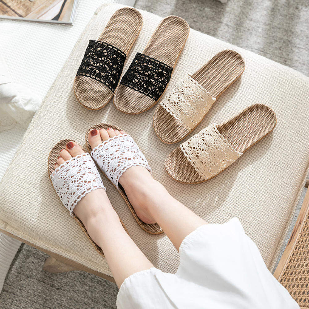 Summer Lace Ladies Sandals and Slippers Home Indoor Non-slip Floor Home Linen Slippers Female Home Use All Seasons Comfortable and Breathable Home Slippers