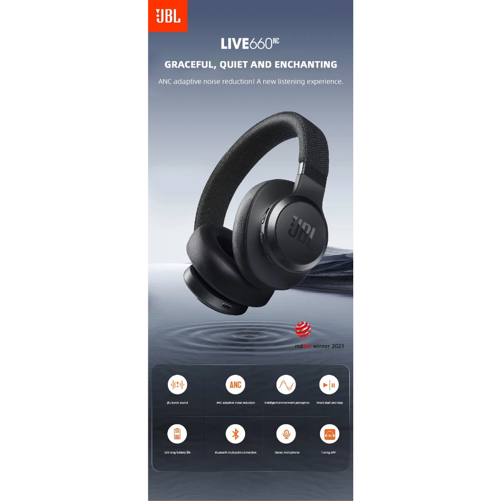 Welcome! 【HOT Selling】 【SG Ready Stock】 【Ship out within 24 hours】 ●●●●●●●●●●●●● Earcups Type:Sealed Charging Method:Cable Impedance Range:up to 32 Ω Bluetooth Version:5.0 Features:Active Noice Cancelling Codecs:Apt-X With Microphone:Yes Is wireless:Yes Support Memory Card:No Waterproof:No Resistance:32Ω Frequency Response Range:20 - 20000Hz Sensitivity:95dB Function:for Video GameCommon HeadphoneFor Mobile PhoneSport Active Noise-Cancellation:Yes Volume Control:Yes Control Button:No Vocalism Principle:Dynamic Wireless Type:bluetooth Communication:Wireless Style:Headphone Certification:CE Origin:Mainland China Brand Name:JBL Model Number:JBL LIVE 660NC ●●●●●●●●●●●●● Technical Specifications: *Driver size: 40mm/1.6" Dynamic Driver *Power supply: 5V, 1A *Weight: 265g/0.6 lbs *Battery type: Lithium-ion Polymer (750mA/3.7V) *Charging time: <2 hrs from empty *Music playtime with BT on and ANC off: Up to 50 hrs *Music playtime with BT on and ANC on: Up to 40 hrs *Frequency Response: 16Hz – 20kHz *Impedance: 32 ohm *Sensitivity: 97dB SPL@1kHz/1mW *Maximum SPL: 94dB SPL *Microphone sensitivity: -19dBV@1kHz/Pa *Bluetooth version: V5.0 *Bluetooth profile version: HFP V1.7, A2DP V1.3, AVRCP V1.6 *Bluetooth transmitter frequency range: 2.4GHz – 2.4835GHz *Bluetooth transmitter power: <10dBm *Bluetooth transmitter modulation: GFSK, π/4 DQPSK, 8DPSK *Maximum operation temperature: 45°C ●●●●●●●●●●●●● The JBL Live 660NC wireless headphones feature 40mm drivers and a sound signature that can be found in the most famous venues all around the world. Keep the noise away and stay focused on the music with Adaptive Noise Cancelling of these Bluetooth headphones. The Ambient Aware technology allows you to safely walk busy streets by increasing ambient sounds, while with TalkThru music is lowered and speech is amplified so you can easily chat keeping your headphones on. ●●●●●●●●●●●●● *Get help from your preferred voice assistant using your voice or with a tap on the earcup. Activate Nose Cancelling or Ambient Aware, check the battery life or power off your JBL Live 660NC simply with your voice. Use the all-new JBL App to easily set your preferred voice assistants. Stay in touch with your world by managing calls with the buttons on the ear-cup. The mic technology allows for perfect stereo calls. Rock on for up to 50 hours (or up to 40 hours with ANC and BT on)! Then, stop for a quick 10-minute charge to get extra 4-hour fun. *Android 6.0 or higher is required for full access to Alexa features when using this device ●●●●●●●●●●●●● ⭐1. Door to door delivery. ⭐(1) Delivery can be made throughout Singapore. ⭐(2) If you need to change the address, you must operate on the platform before shipping. ●●●●●●●●●●●●● Note: This is OEM version and not able to submit warranty via JBL website and not able to use in JBL app.