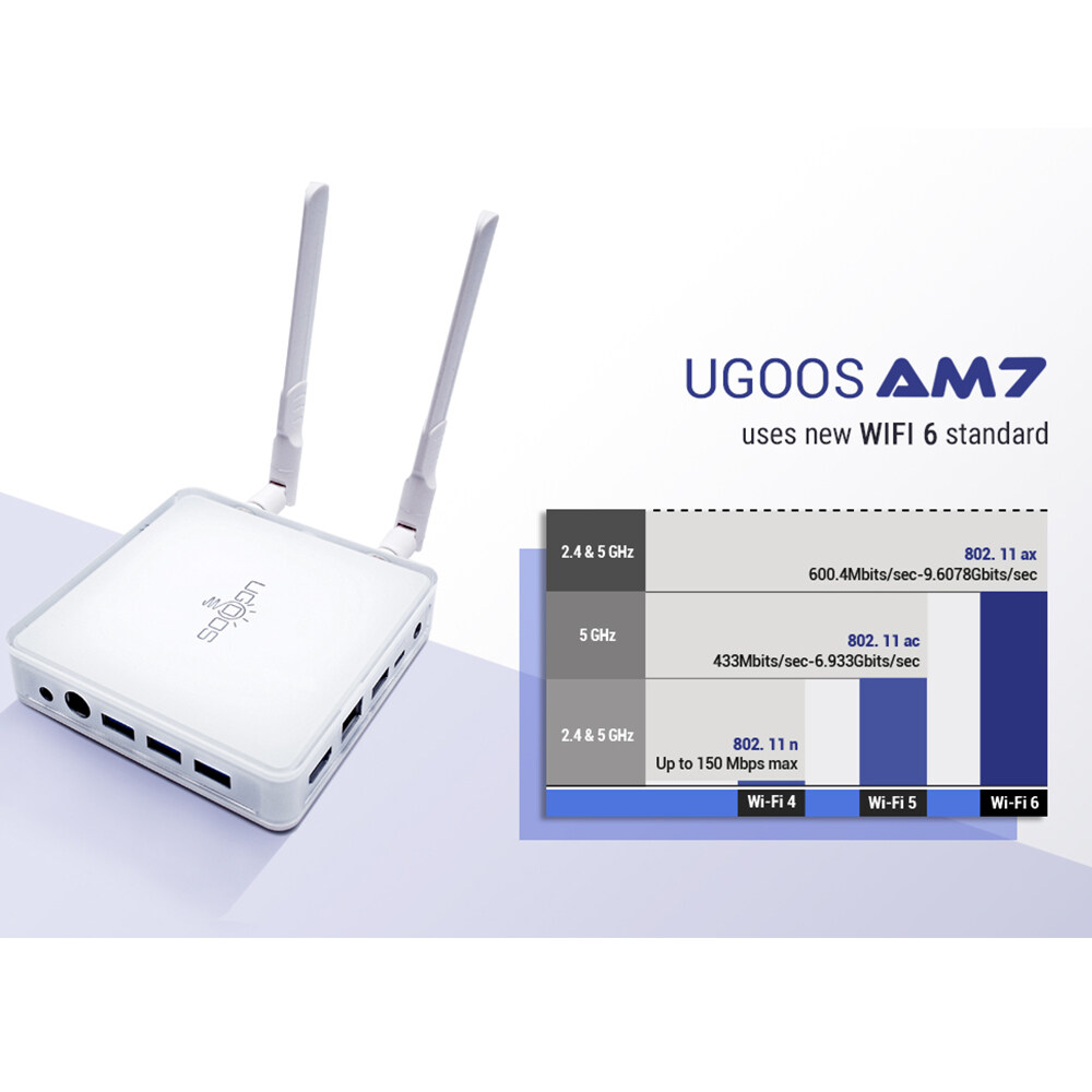 Ugoos AM7 Smart TVBox Android 11 Amlogic S905X4 2.4G 5G WiFi6 4GB DDR4 32GB ROM USB-C 1000M Bluetooth 4K HD TVBOX AV1
