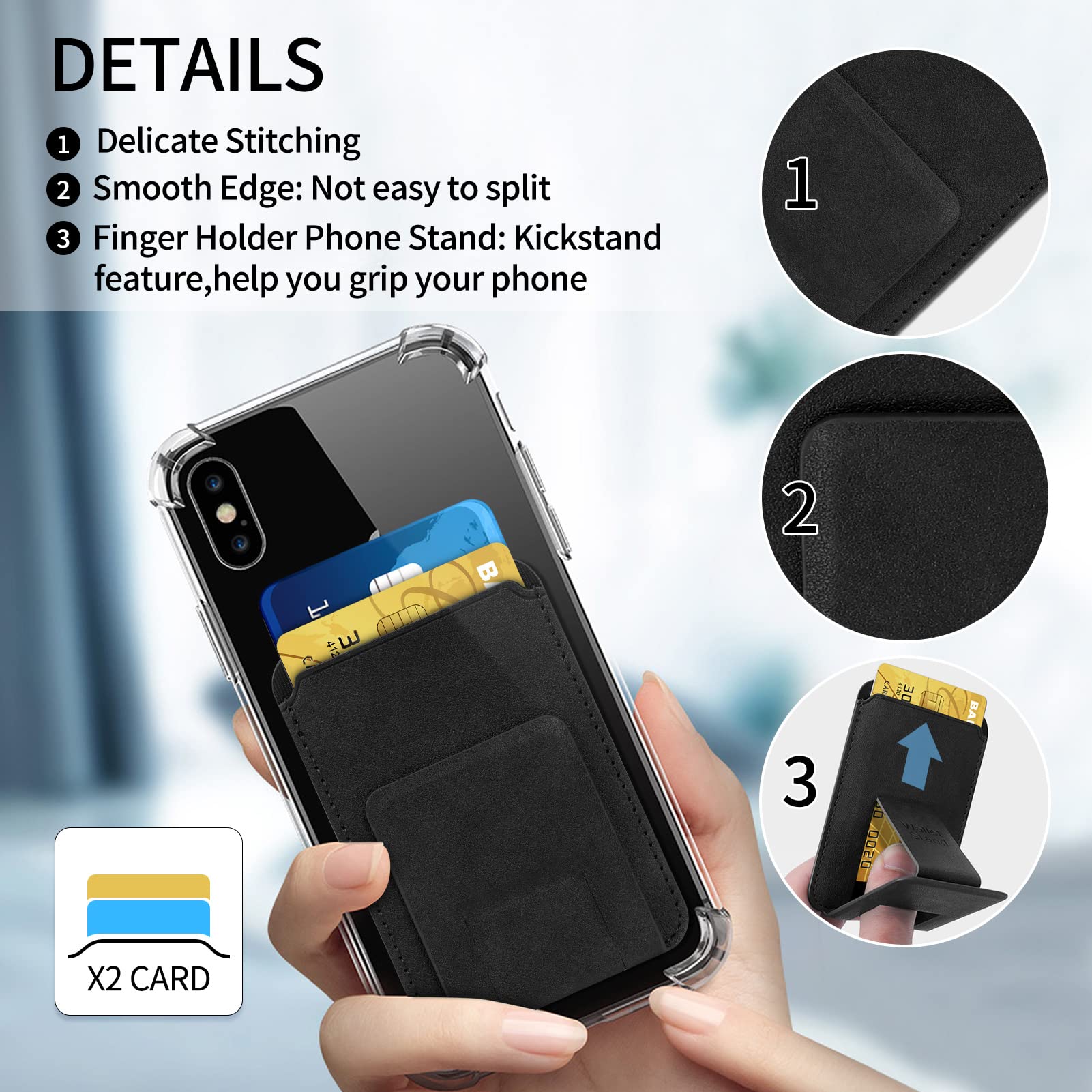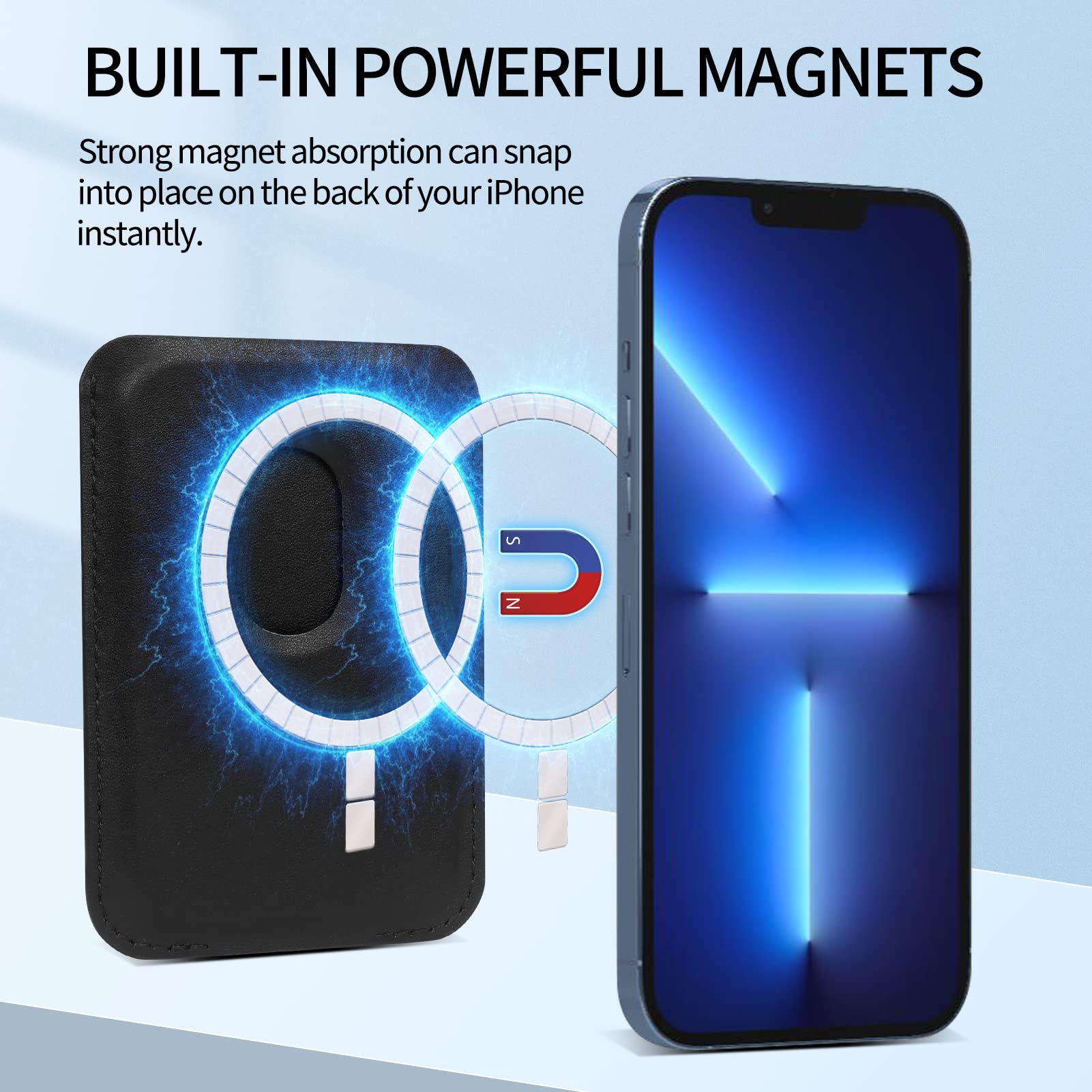 • Powerful built-in magnet allows it to effortlessly snap into place on the back of your iPhone as a card holder.