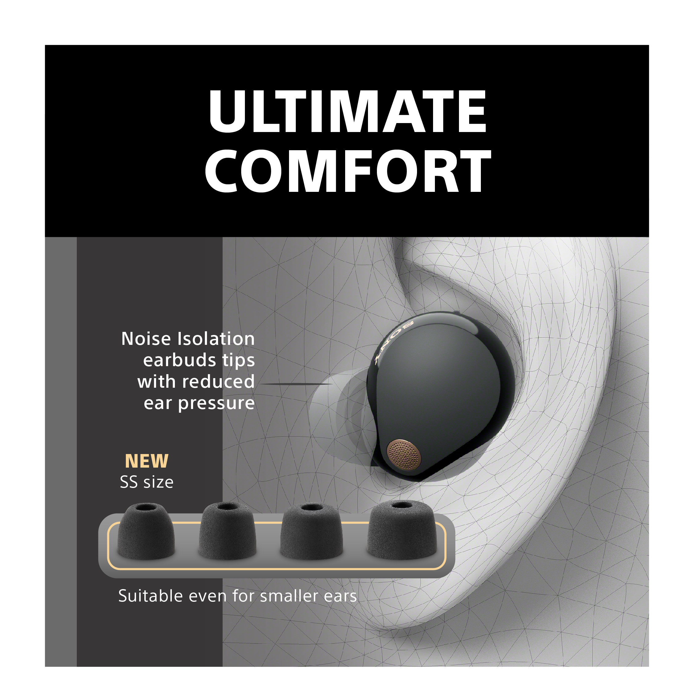 1 As of April 10, 2023. Ambient noise reduction according to research by Sony Corporation, measured using JEITA-compliant guidelines for the top 10 brands (by market share) of truly wireless style of noise-cancelling headphones market.