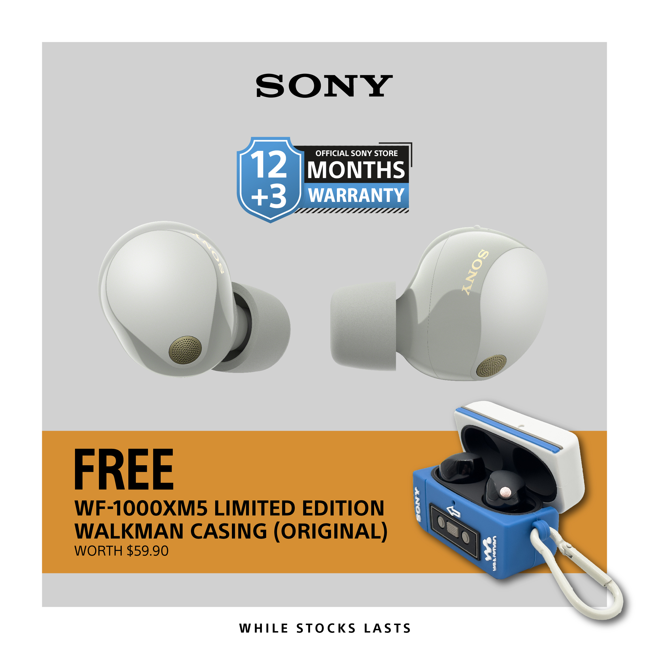 Sony WF1000XM5 | WF-1000XM5 | 1000XM5 | Wireless Noise Cancelling Headphones | 1 Year + 3 Months Warranty + Free Limited Edition Walkman Casing* (worth $59.90)