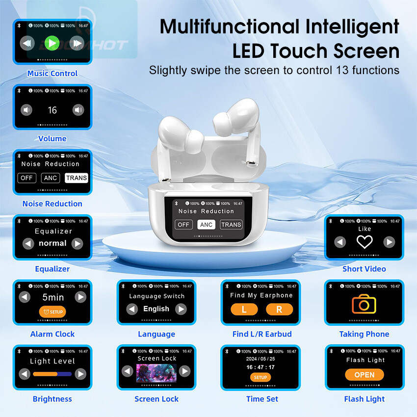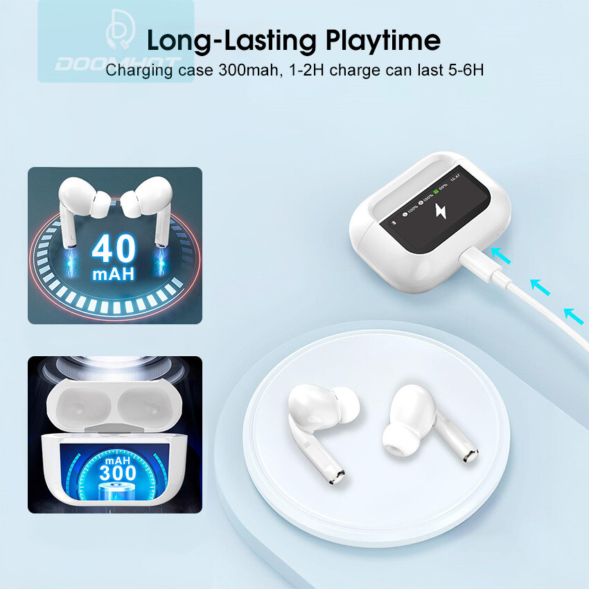 DoomHot Bluetooth Earphones LCD Touchscreen ANC TWS Bluetooth Headset Earphone Touch Screen V5.3 Smart Screen Active Noise Reduction Comfortable Earphone