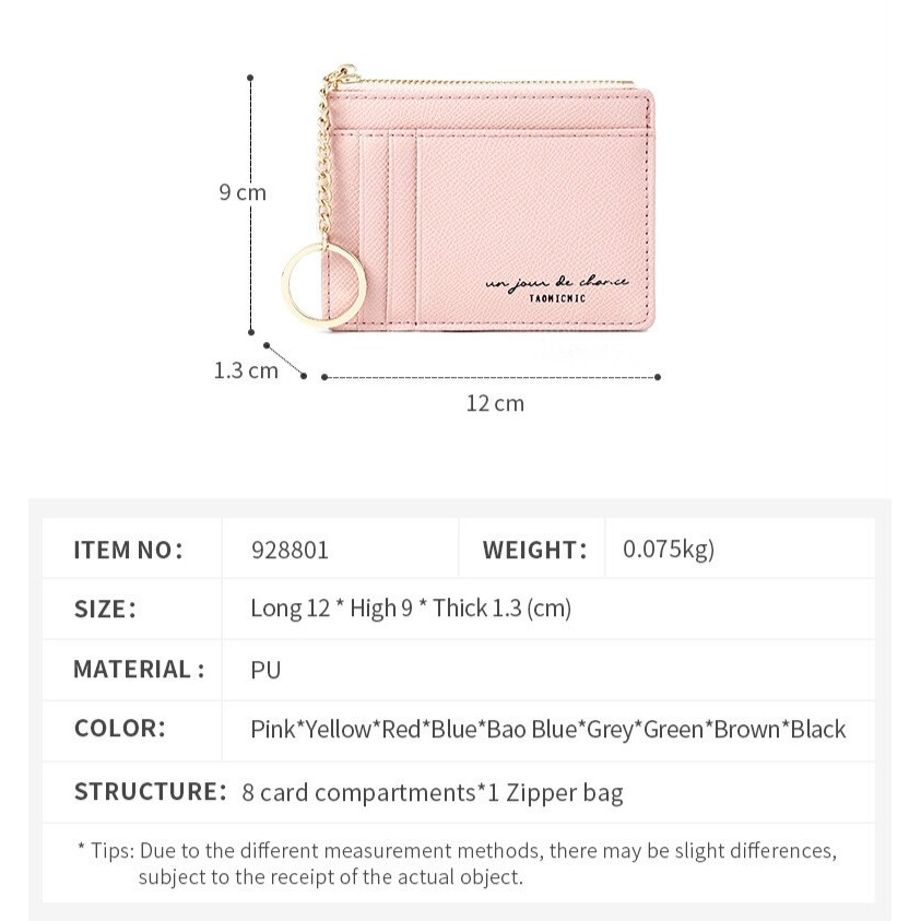 MINGKE Card Holder Wallet Coin Purse for Women 8 Cards Zipper Keychain Mini Simple Fashion