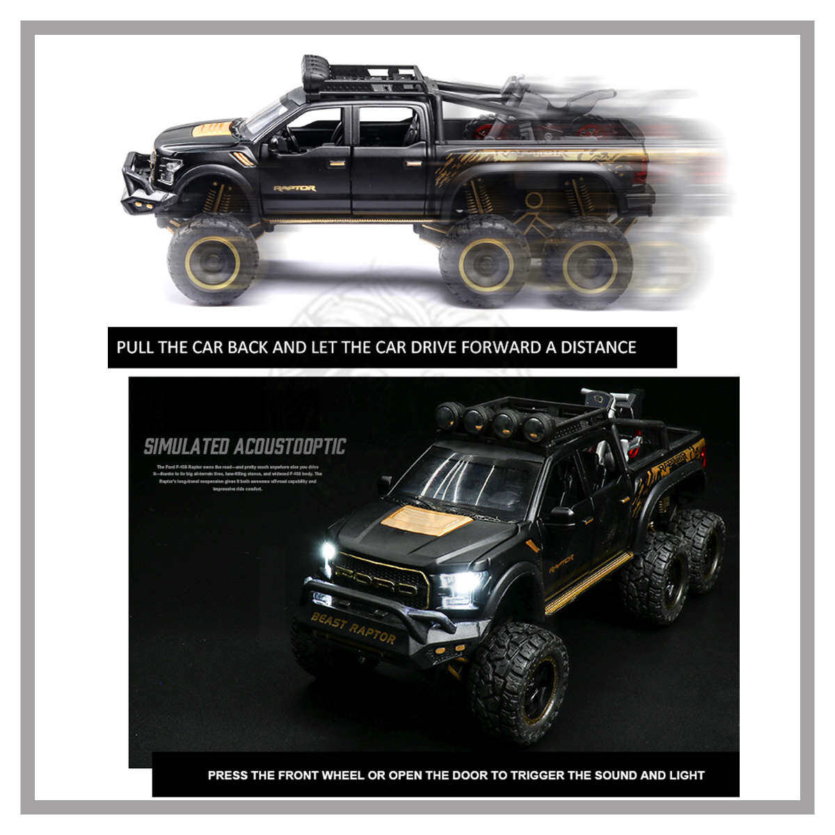 LEO 1:28 Ford Raptor F150 off-road 6*6 alloy car model diecast cars car for kids truck toys for kids toys for boys cars toys monster truck toys toy truck for kids big hot sale