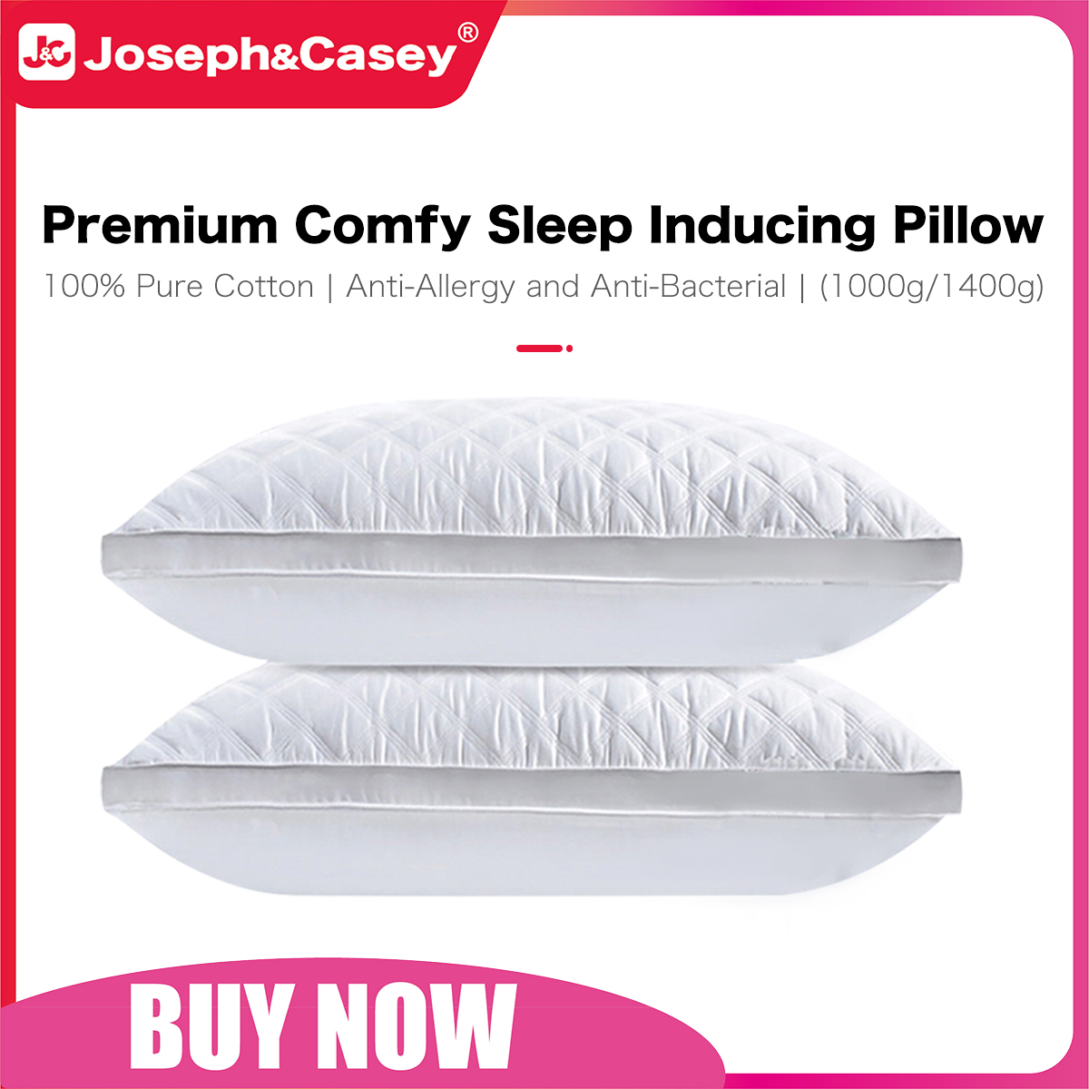 JollyVogue pillows, set of 2, large, perfect for sleeping, soft and supportive pillows with down alternative filling for side and back sleepers, hotel collection