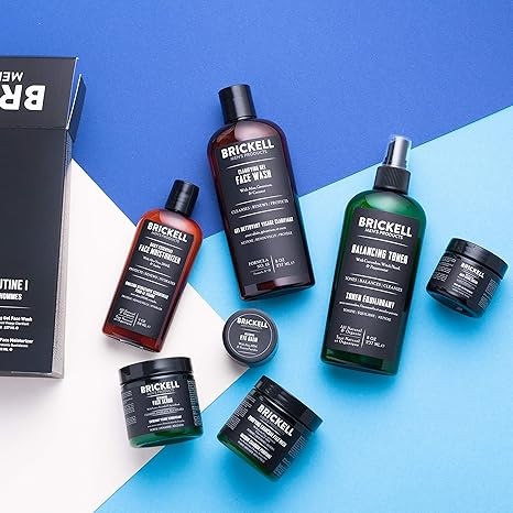 Brickell Men's Daily Elite Face Care Routine I, Toner, Gel Facial Wash, Face Scrub, Anti-Aging Night Cream, Eye Cream, Charcoal Mask and Moisturizer, Natural and Organic, Scented