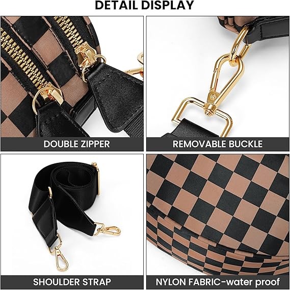 ✔️[Dimensions and Capacity]: The checkered waist bag measures 12.20 x 5.51 x 8.66 inches, making it suitable for everyday items like a phone, wallet, keys, and a Stanley water bottle. A zippered pocket on the back provides storage for important items.